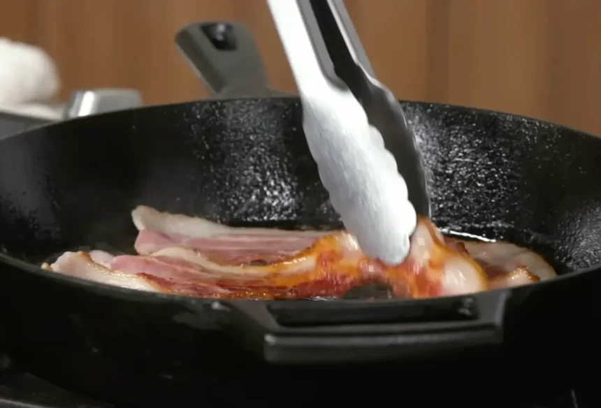 - Hideg serpenyőben kezdjük sütni a szalonnát, majd alacsony-közepes lángra tekerjük fel, ezáltal a zsír lassabban olvad ki, és kevesebb füsttel jár.